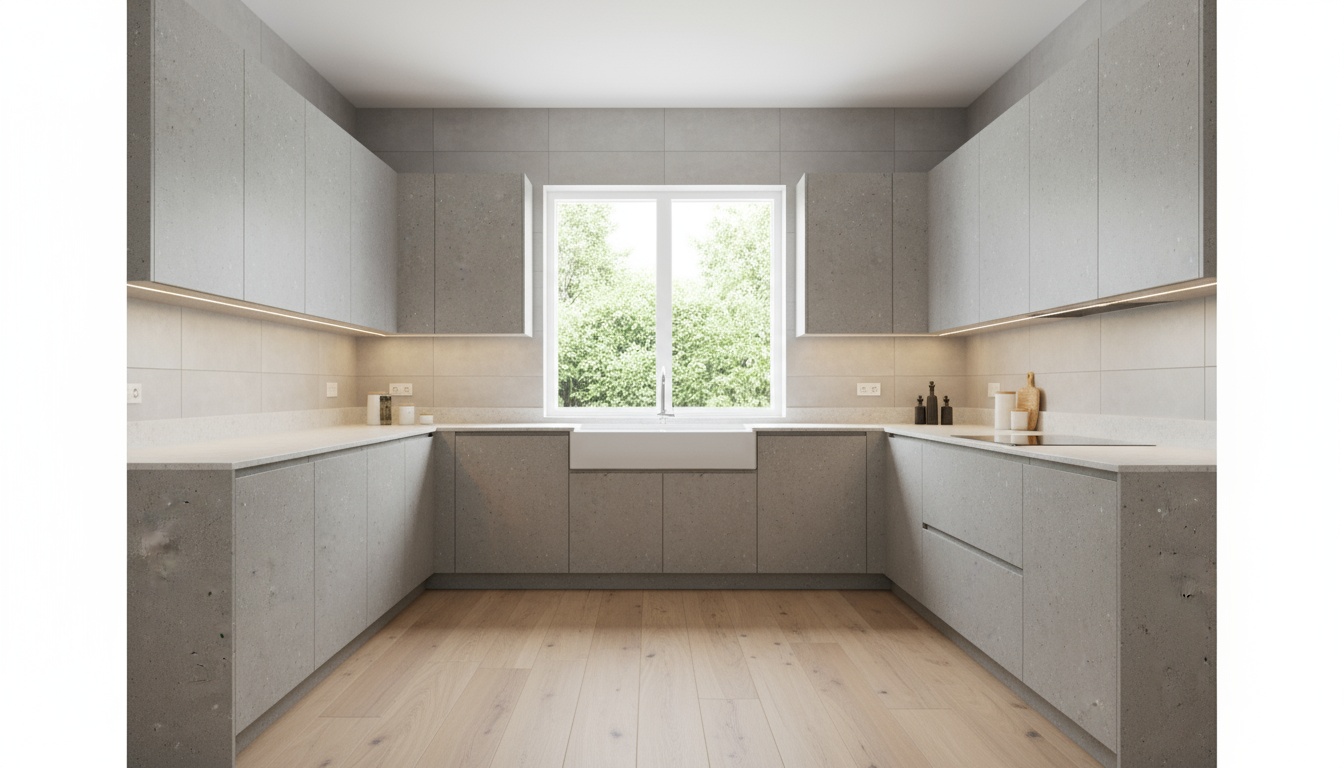 - Natural Concrete Panel Kitchen Cabinets