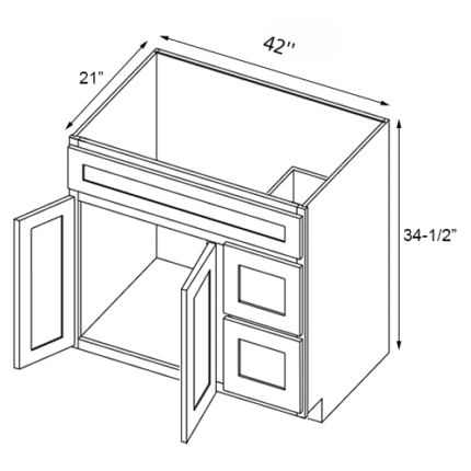 Original price was: $310.00.$209.00Current price is: $209.00.Vanity With Sink Cabinet (42″”W x 21″”D x 34 1/2″”H) 2 doors 3 drawers